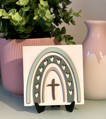 Tile - Cross in rainbow